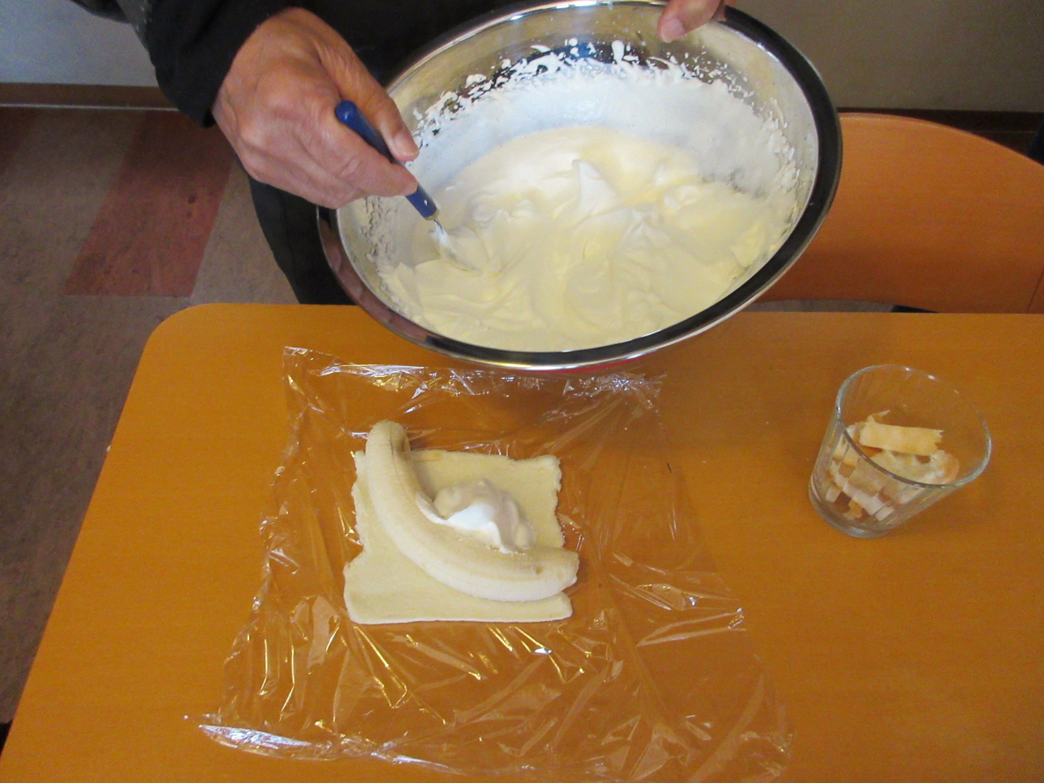 10/15(水)午後のプログラムのスイーツサークルで「丸ごとバナナ風」を作りました。
