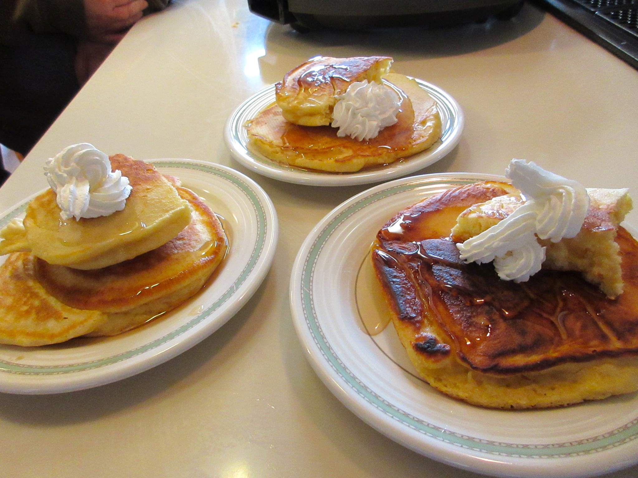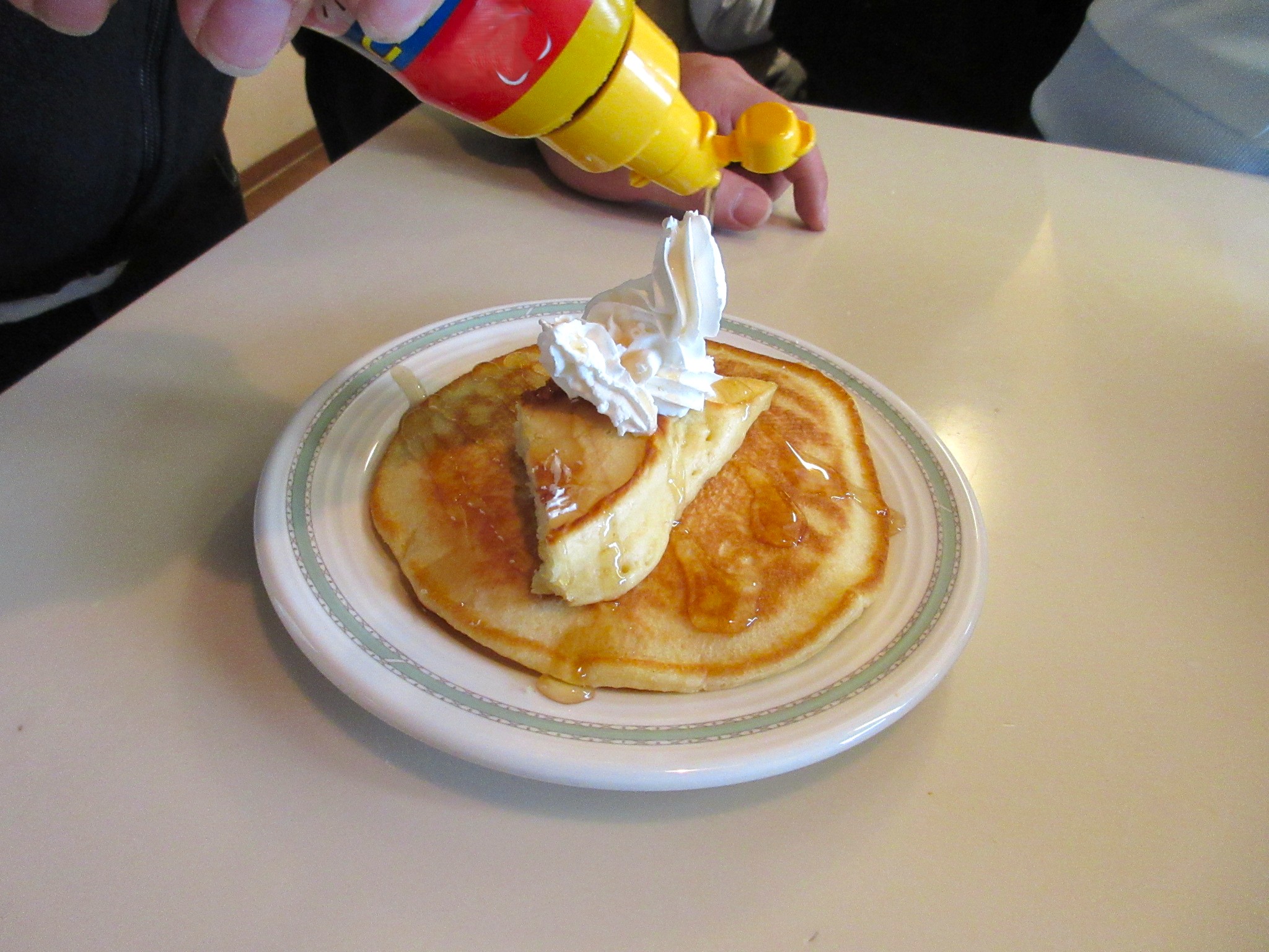 今回はホイップクリームとシロップをたっぷり乗せたホットケーキでした。